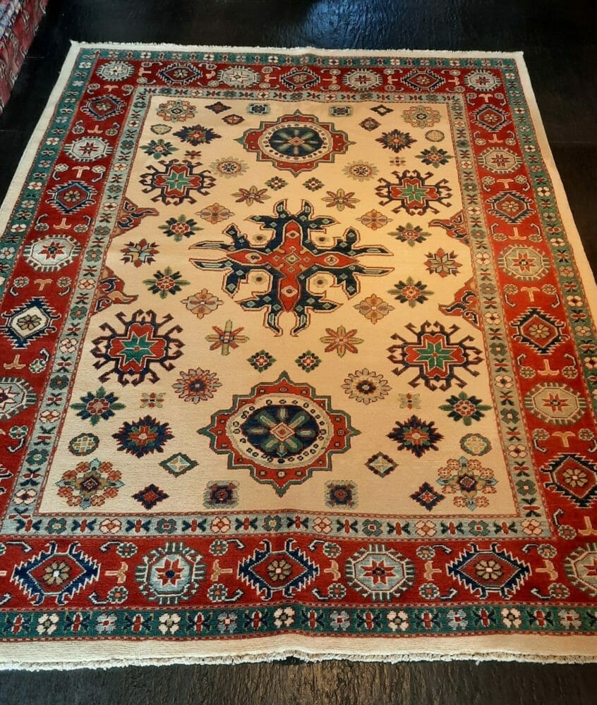 Tappeto kazak pakestano annodato a mano in lana e cotone Dettagli del tappeto Misura: 240x165 cm. Codice: 394 Prezzo € Richiedi Info Torna a tutti i tappeti Richiedi informazioni su questo tappeto Usa il telefono Se ci contatti con Whatsapp, nel primo messaggio verrà inserito il riferimento di questo tappeto. WhatsApp Tel. 0282910747 Cel. 3388218759 Scrivi una Email