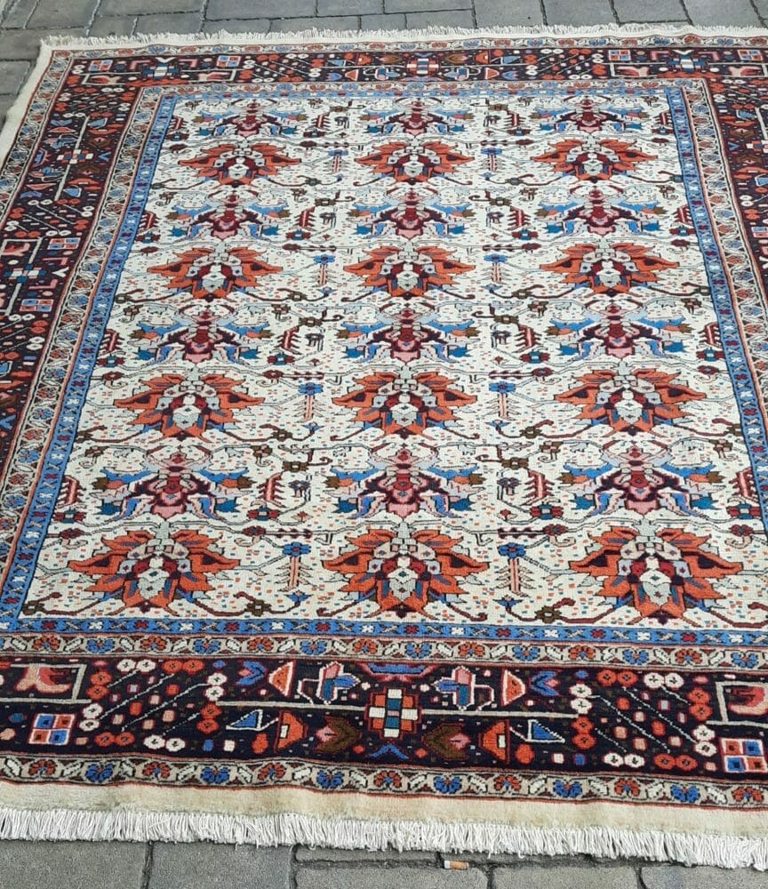 Tappeto persiano Heriz annodato a mano in lana e cotone