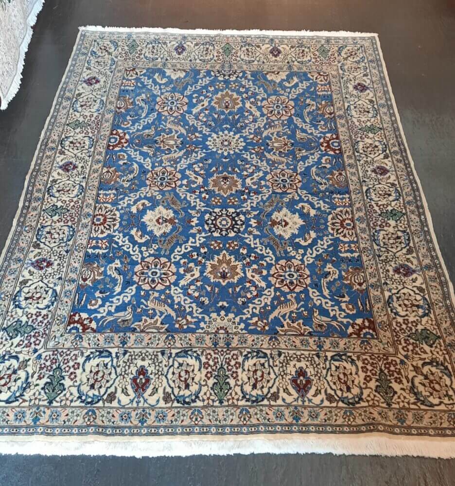 Tappeto Nain 9la persiano annodato a mano in lana e seta
