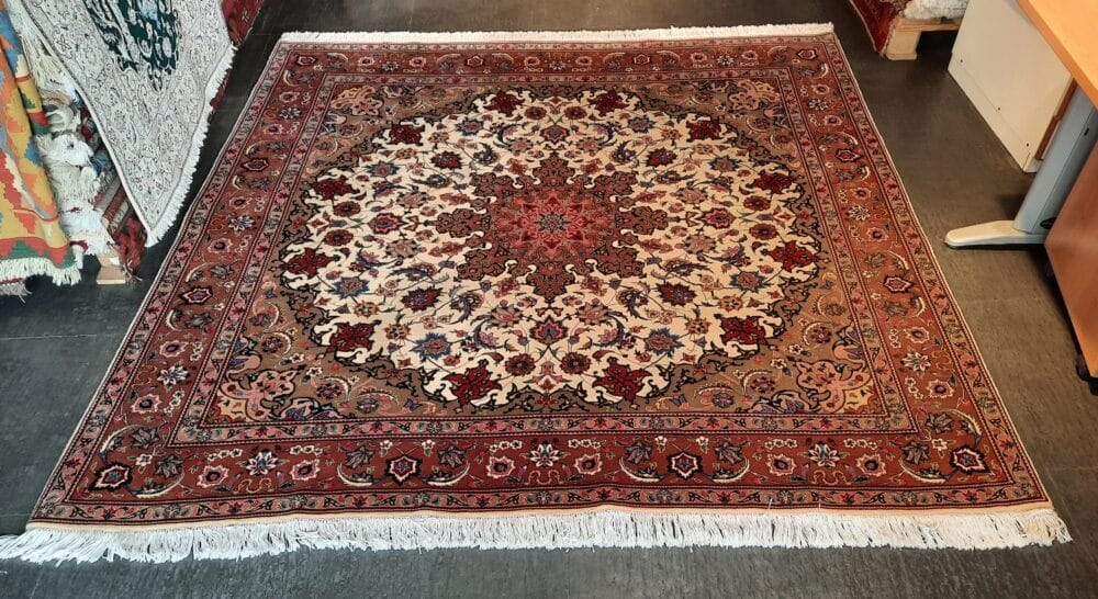 Tappeto Tabriz persiano annodato a mano in lana e seta quadrato