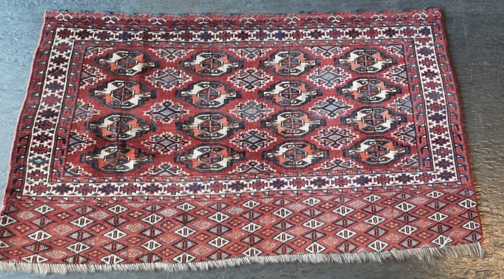 Tappeto turkaman yamut del 900 annodato a mano in lana e lana